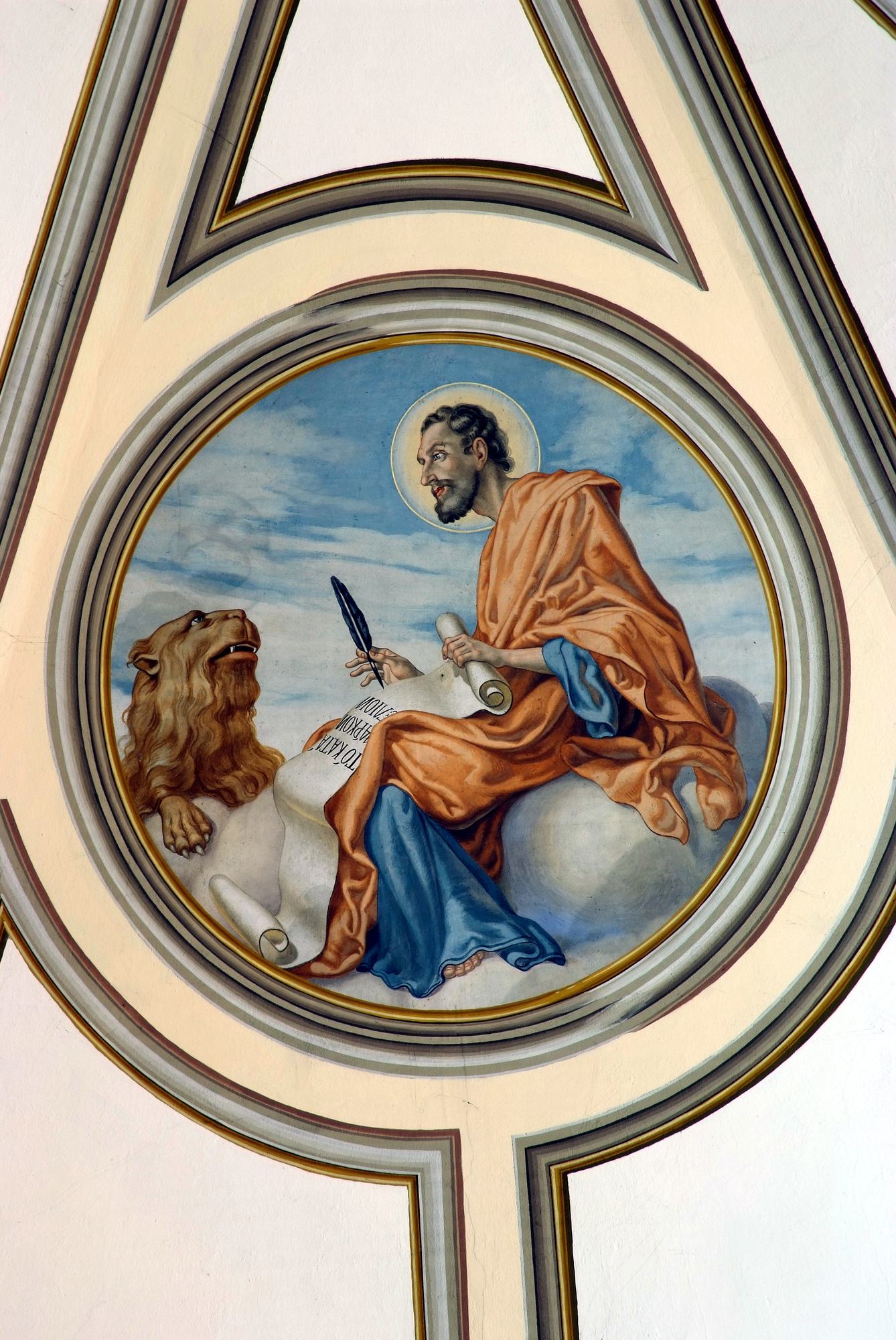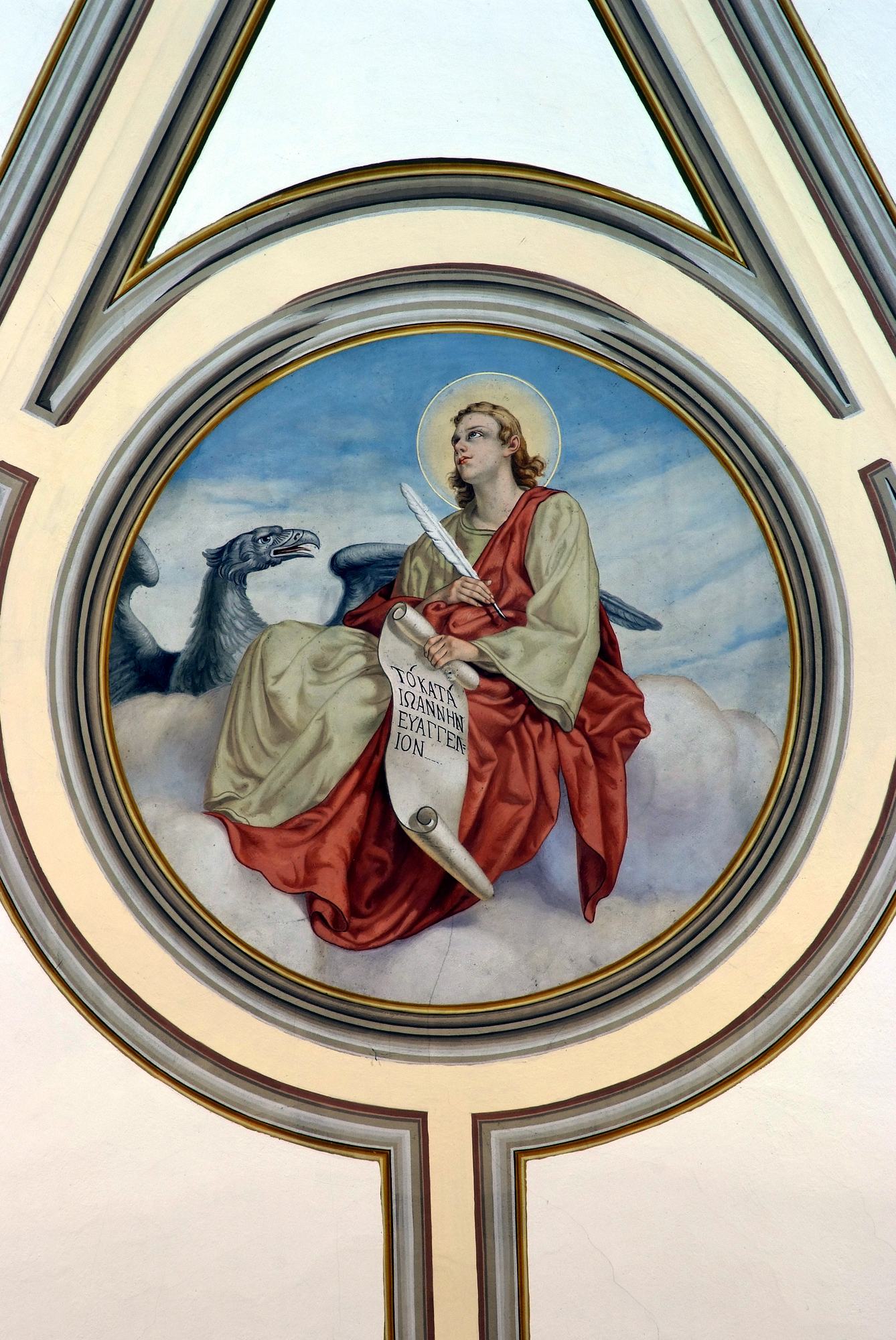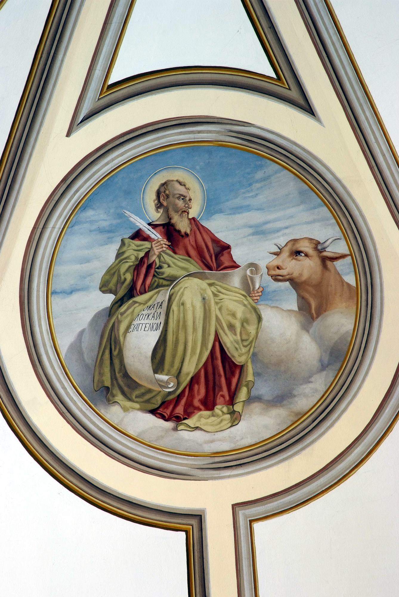 La lunetta che separa il coro dal presbiterio è decorata dall’immagine dell’agnello, simbolo di Cristo e del suo sacrificio.