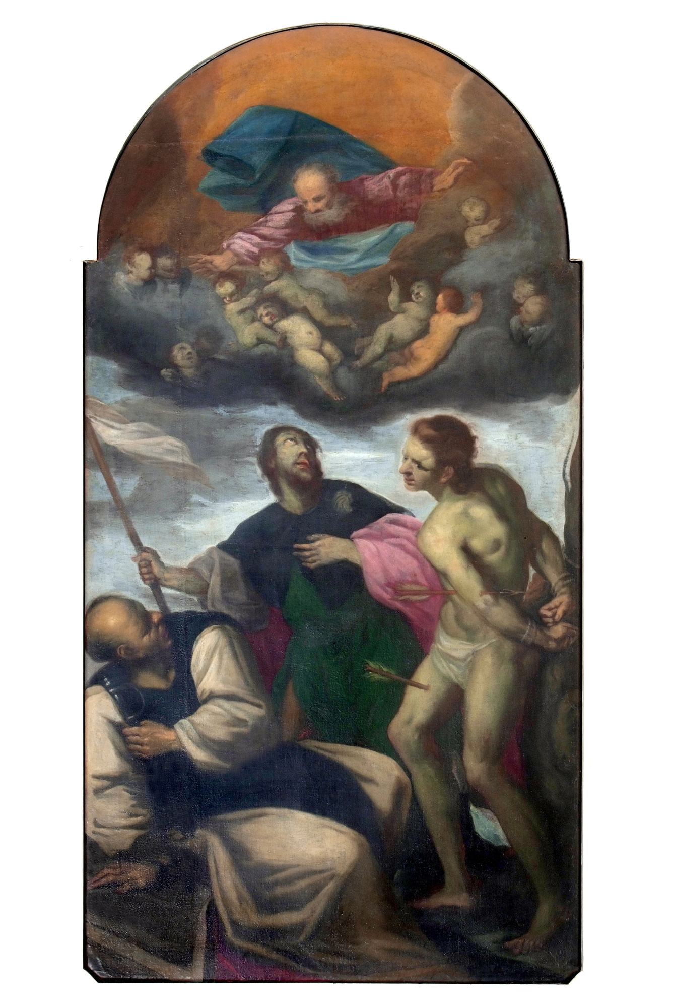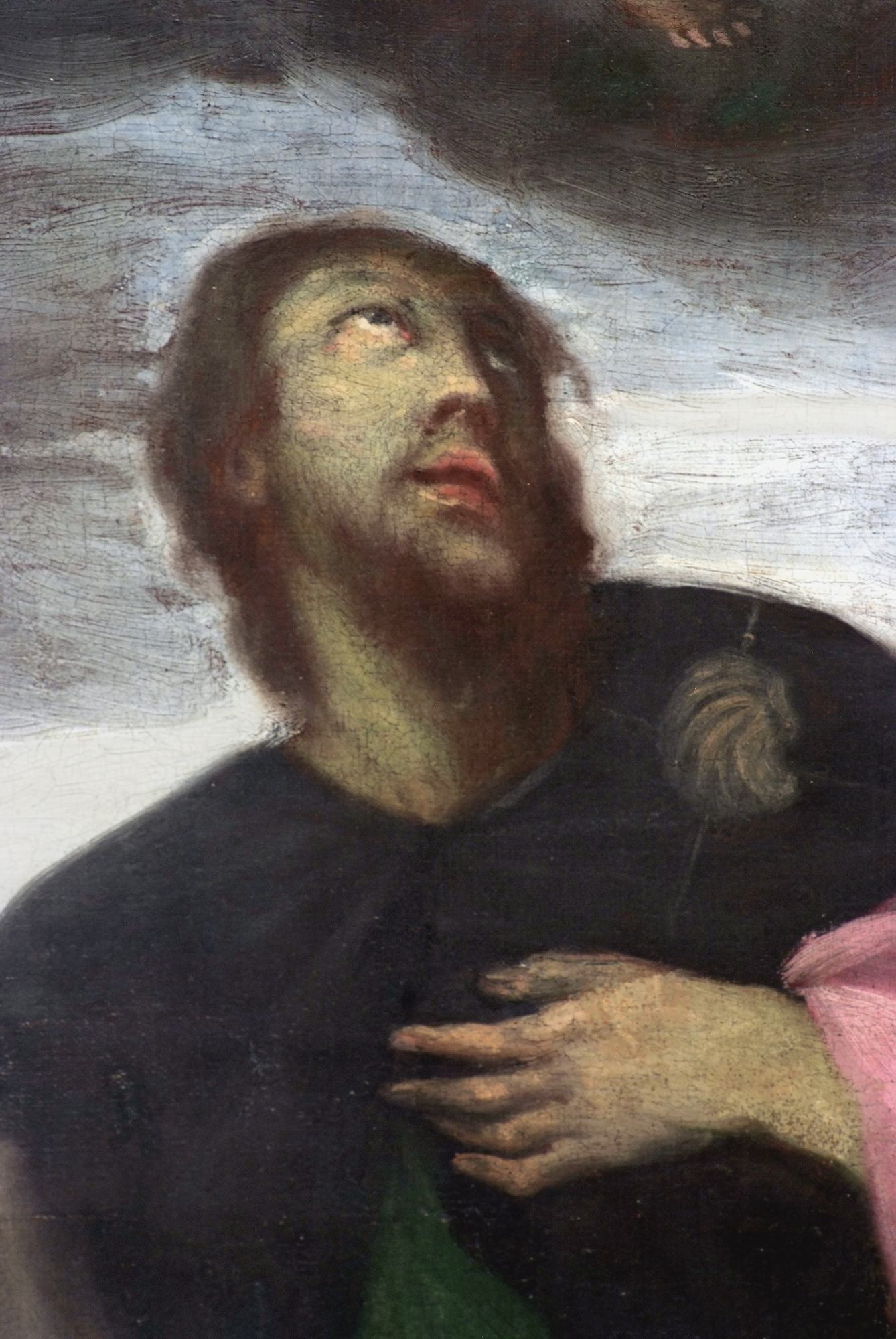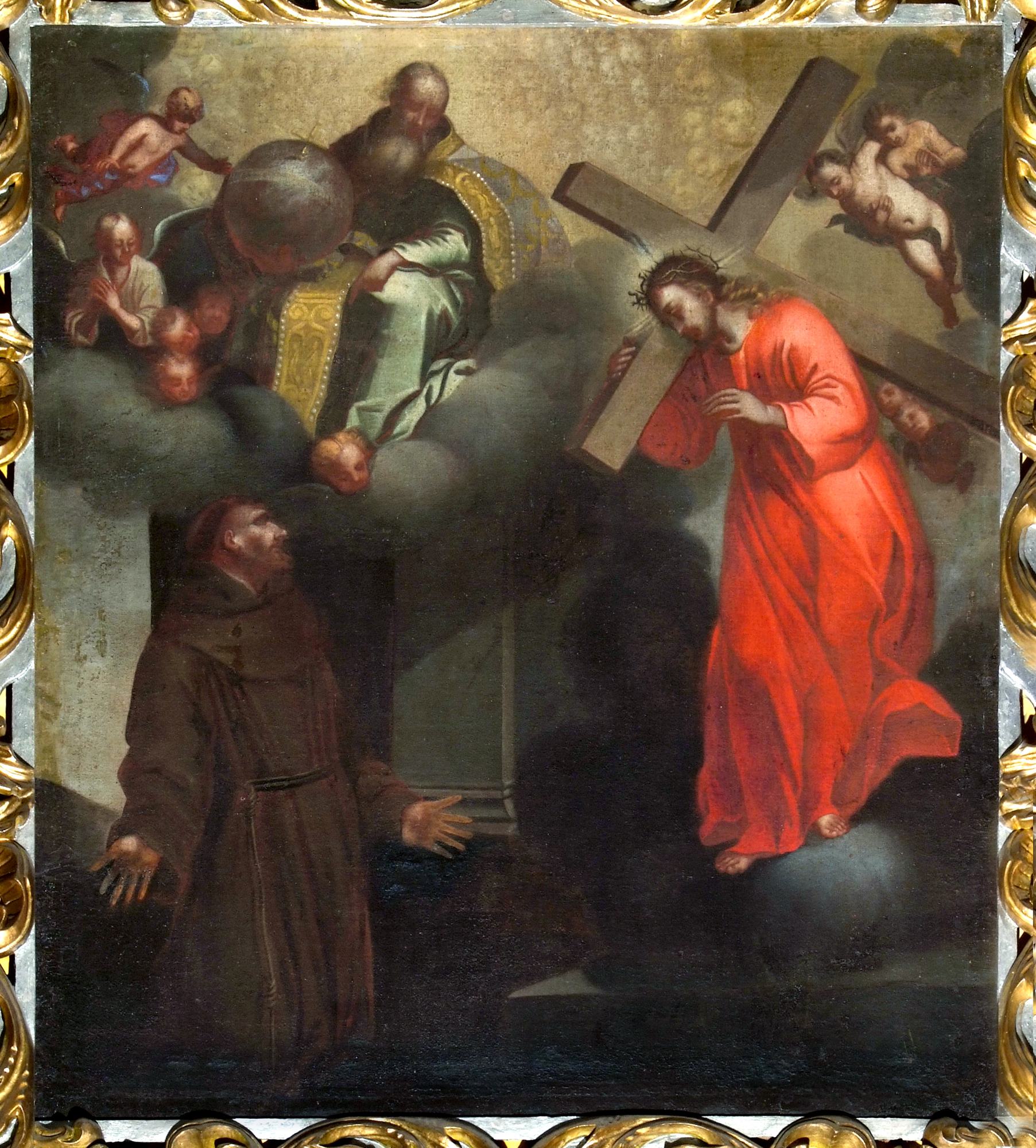 Sulla parete opposta si trova la tela con La visione di san Francesco (secolo XVIII) in cui l’autore, non identificato, rappresenta il santo di Assisi in ginocchio e in adorazione di Cristo che, posto dinanzi a lui, trasporta la croce verso il monte Calvario. Sovrasta la scena l’imponente figura del Padre Eterno, il quale, assiso su un trono di nubi e circondato da una schiera angelica, indica al Figlio il santo.