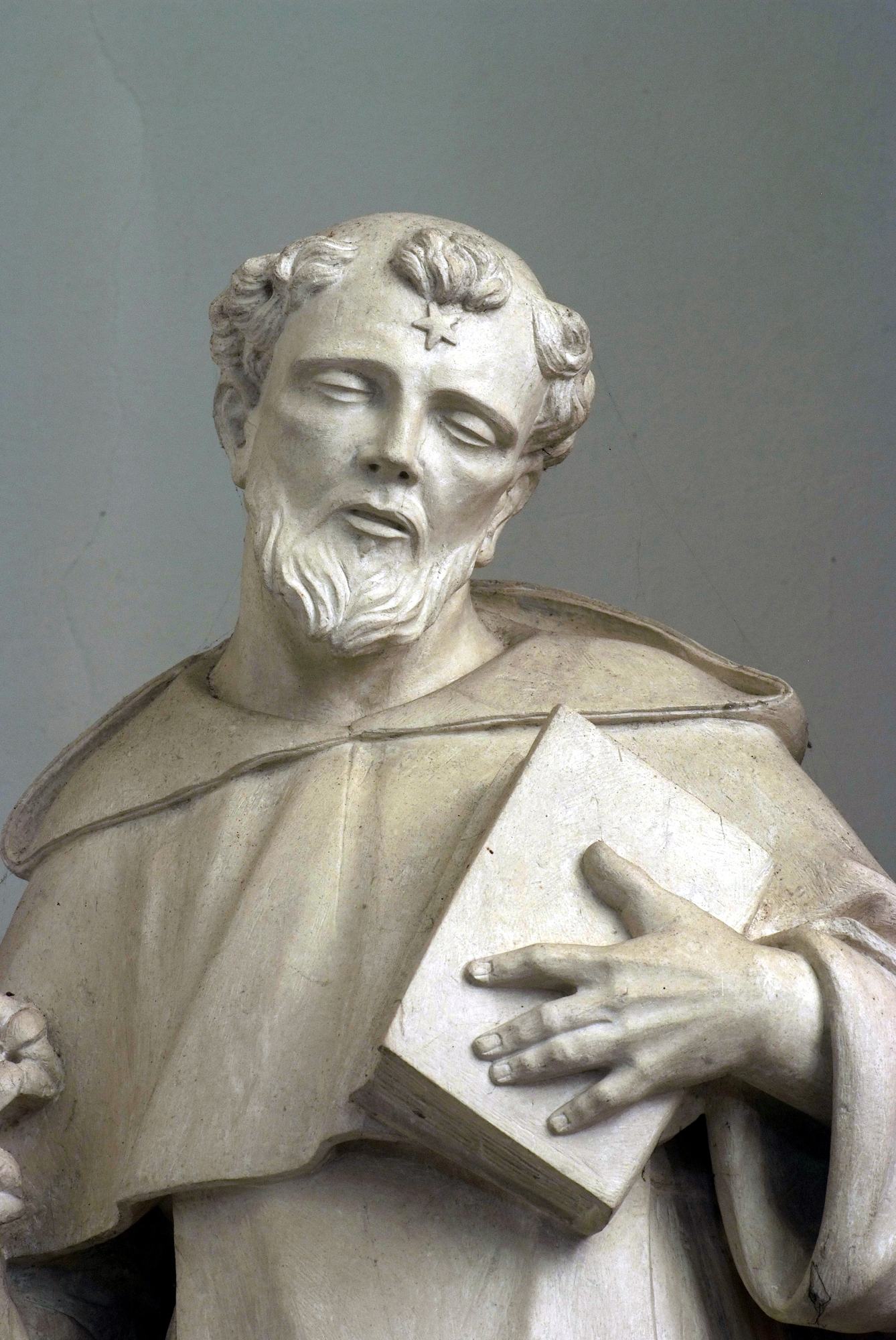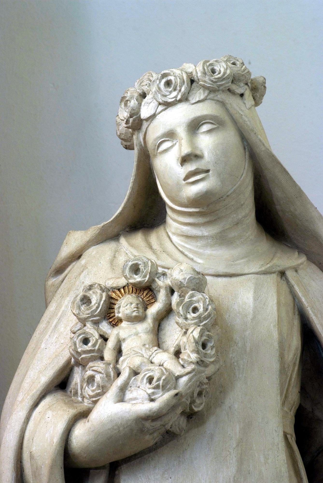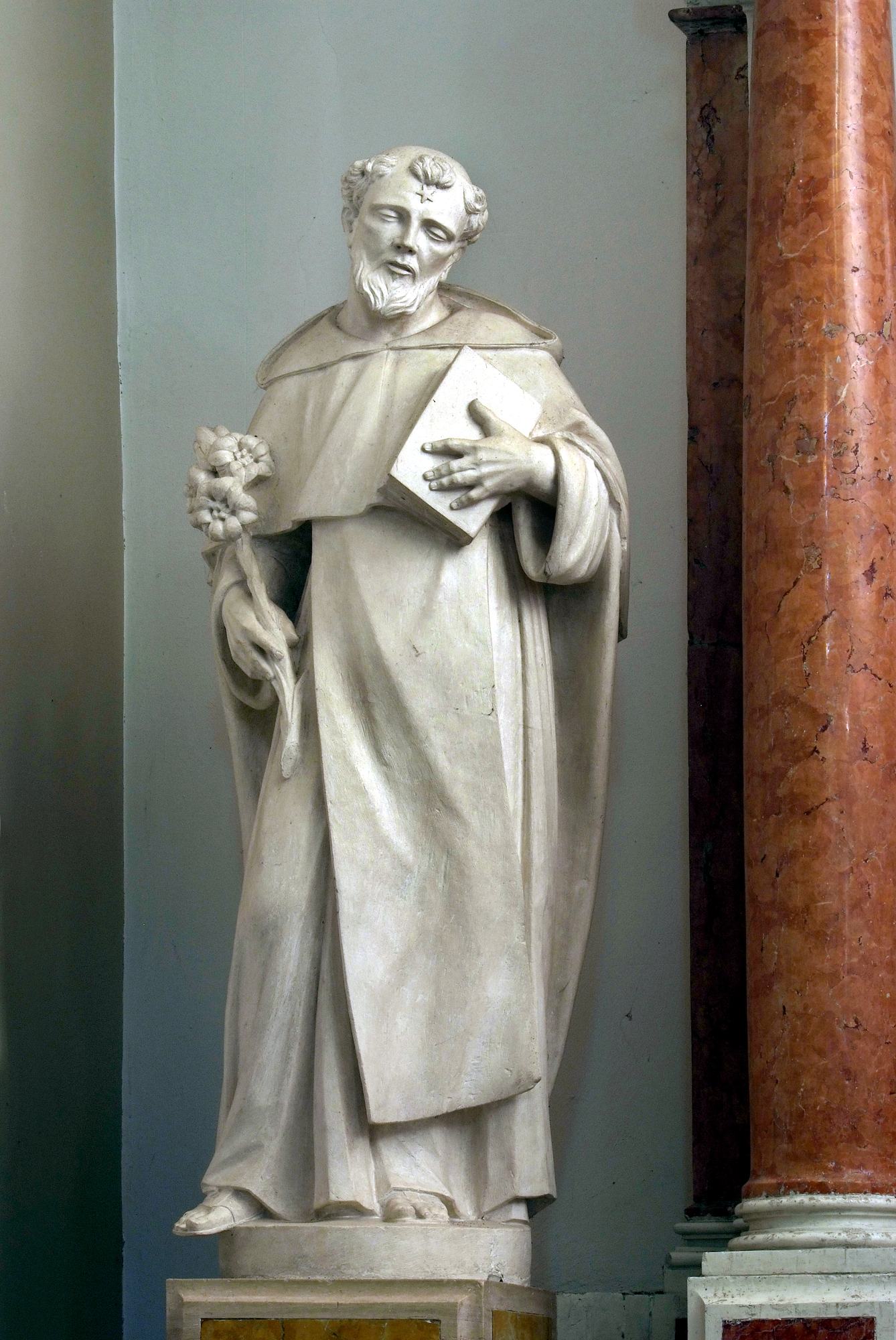L’altare, dal prezioso paliotto intarsiato con un raffinato intreccio floreale di marmi policromi, è fiancheggiato dalle statue di San Domenico e Santa Rosa da Lima. Il fondatore dei Domenicani è rappresentato vestito con l’abito dell’Ordine e associato ai suoi consueti attributi: la stella in fronte e il libro in mano, emblemi della sapienza, e il giglio come segno di purezza. La santa è raffigurata come una giovane domenicana e con i simboli a lei propri, ossia la corona di rose sul capo e il Bambino Gesù, in questo caso inserito al centro della ghirlanda rosata che la donna tiene in mano.