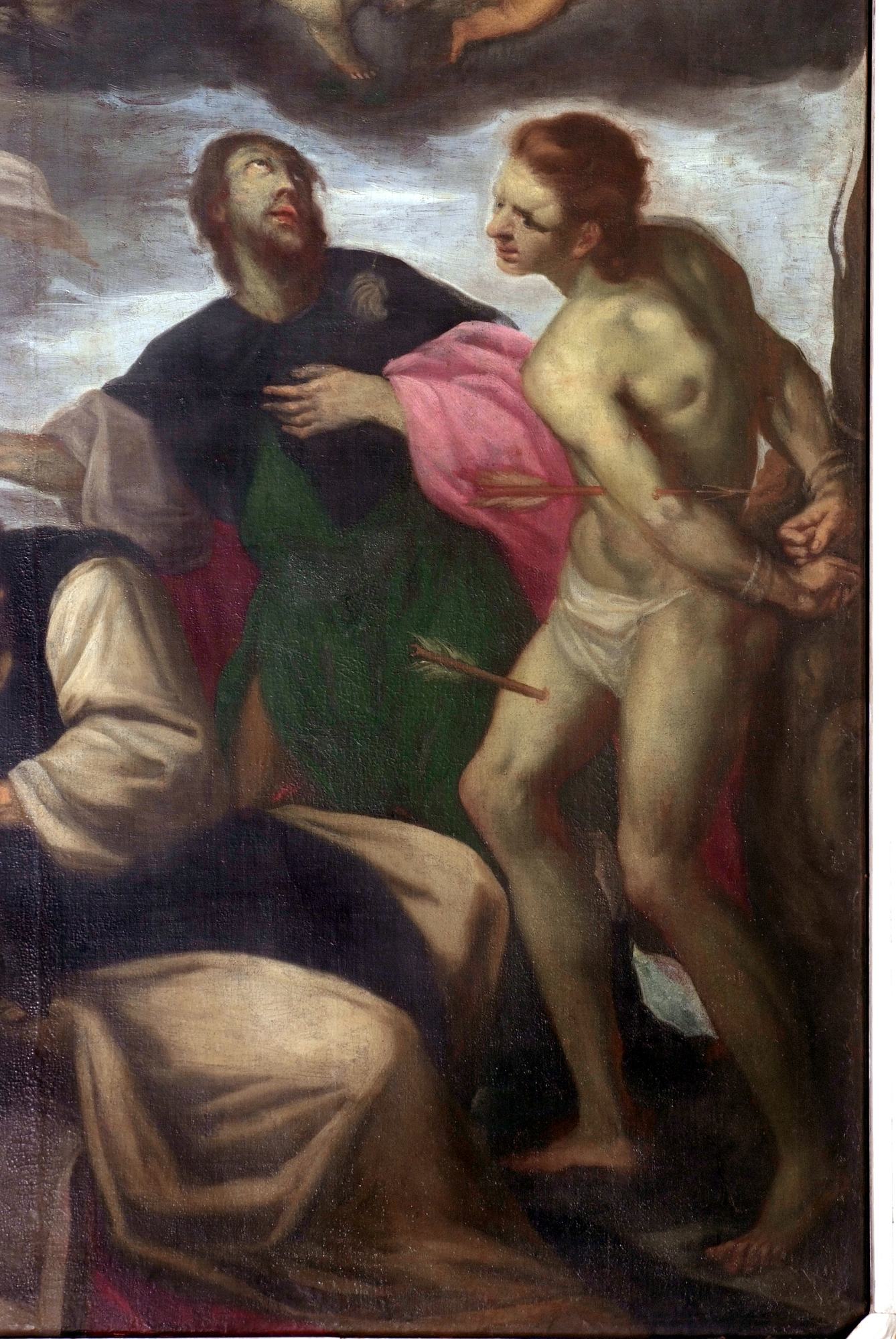 Questo affastellamento iconografico è forse il frutto dell’avvicendamento di più artisti e sicuramente di più committenti locali, i quali a diverse riprese ed evidentemente mettendo sul piatto una disuguale offerta economica, vollero lasciare una testimonianza per qualche grazia ricevuta, o affidarsi alla preghiera dei santi. In più punti sono infatti visibili lacerti ed iscrizioni che, seppur non facili da decifrare, indicano l’anno di esecuzione di alcuni dipinti (1533), suggerendone la realizzazione a pochi giorni di distanza l’uno dall’altro, e svelano anche l’identità dei vari committenti.