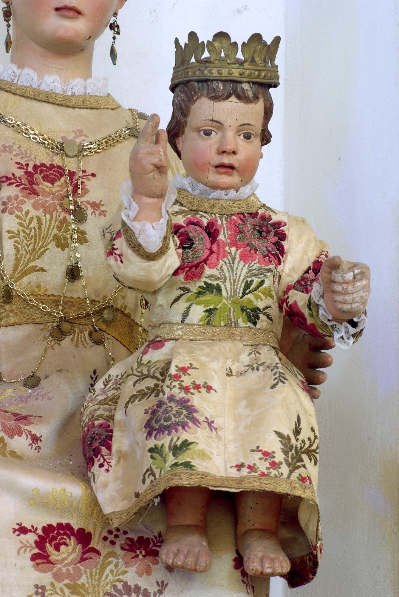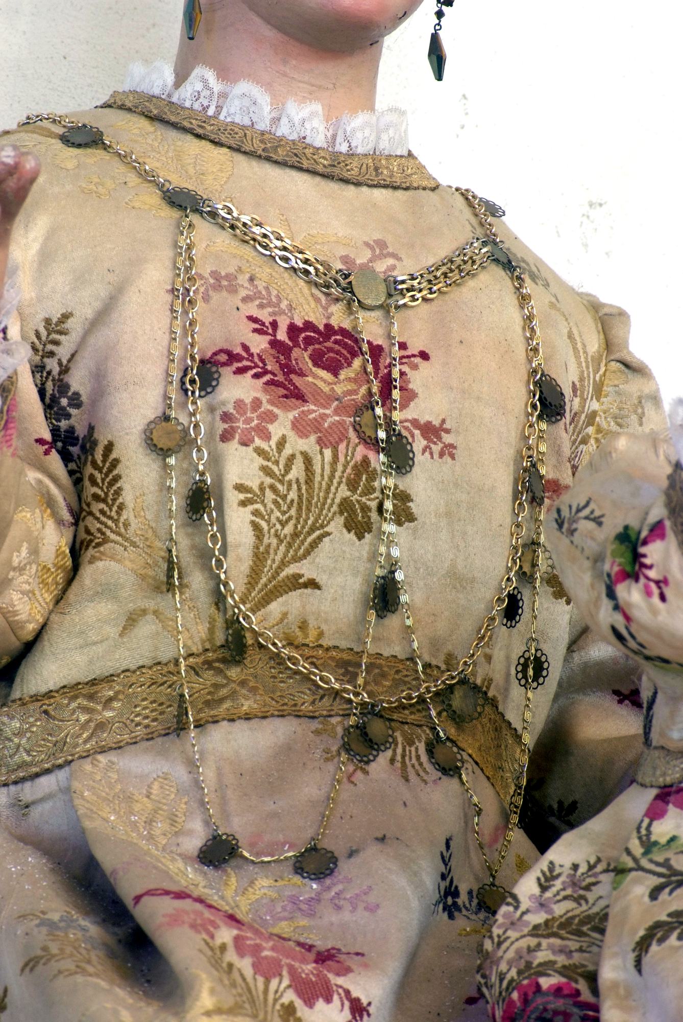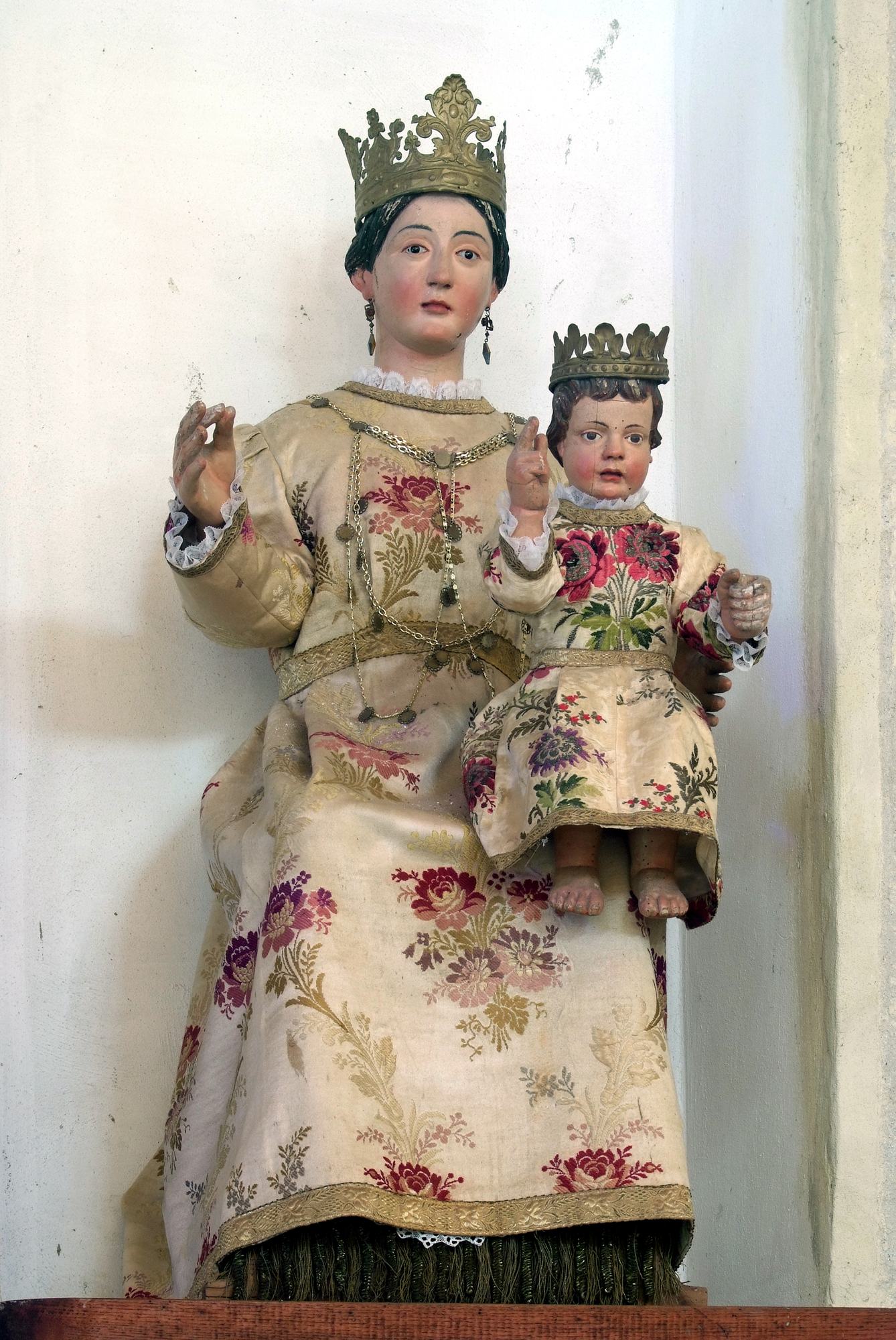 Al centro dell’altare, entro un ovato, è esposta la settecentesca statua della Vergine con Bambino, realizzata in legno e cartapesta. Di autore ignoto, fa parte di quelle Madonne vestite che nel XVIII e fino al XIX secolo adornavano le chiese friulane e delle quali le donne del luogo si prendevano cura mondando e cambiando le vesti, che non di rado erano in seta o, comunque, finemente ricamate.
