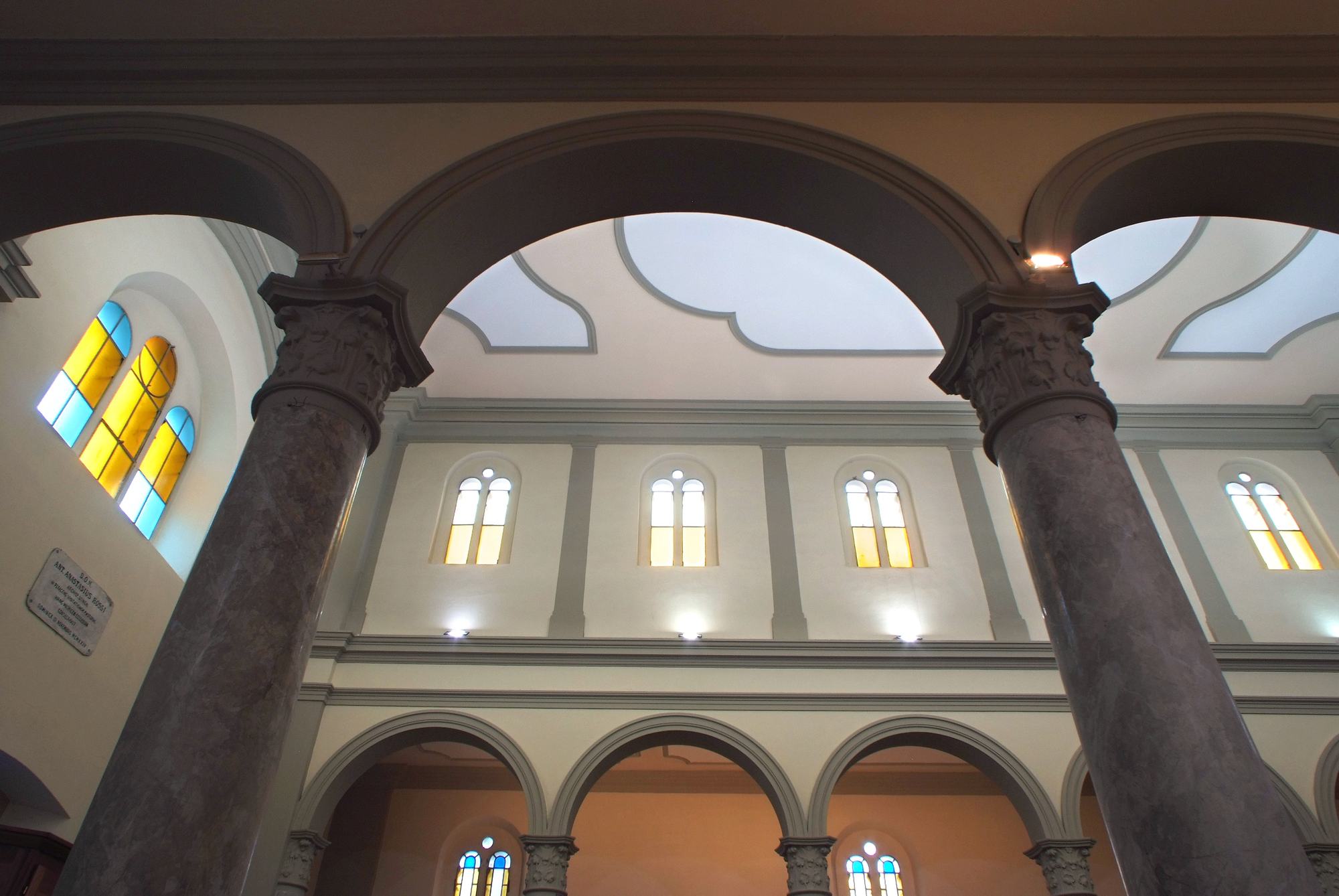Scandito dal ritmo degli archi e delle corrispondenti finestre poste sul registro superiore, lo spazio interno della chiesa si presenta suddiviso in tre navate.